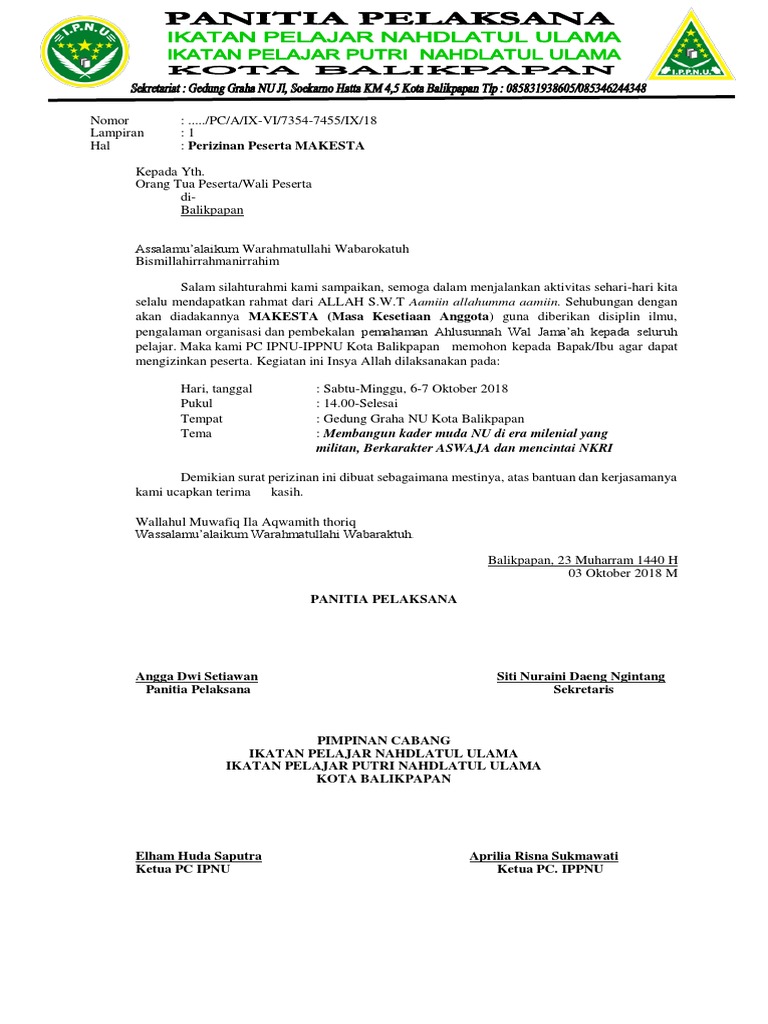 Yuk Lihat 12+ Contoh Surat Izin Orang Tua Ipnu Ippnu Paling Lengkap